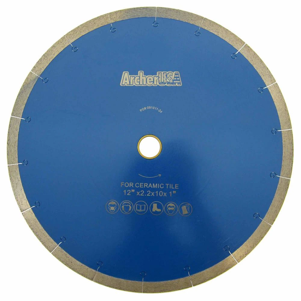 Premium quality J-Slot continuous diamond blades, wet tile saw blades for porcelain or ceramic tile cutting by Archer PRO, choose sizes from 4 in. to 14 in. American designed tools for high sawing performance and long tool life at an affordable price.