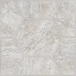 Armstrong Lattice Cream 12 in. x 12 in. Vinyl Tile provides the elegant stone markings of light and bright travertine stone in hexagon shapes. An enhanced embossing provides a true to look and texture of both stone and grout lines. ToughGuard durability guarantees this floor will not rip, tear or gouge under normal household use and a no wax wear layer really stands up to families and pets. Simple peel and stick installation, easy clean up and lifetime limited residential warranty coverage make it a do-it- yourself favorite for active households.