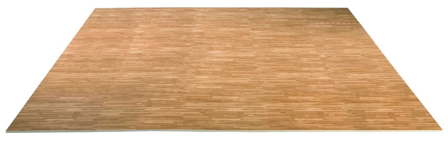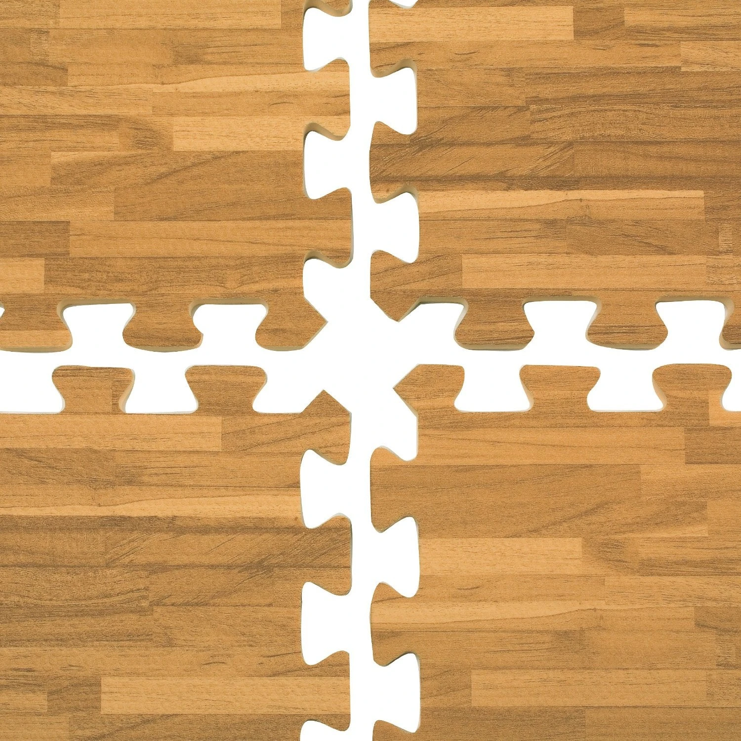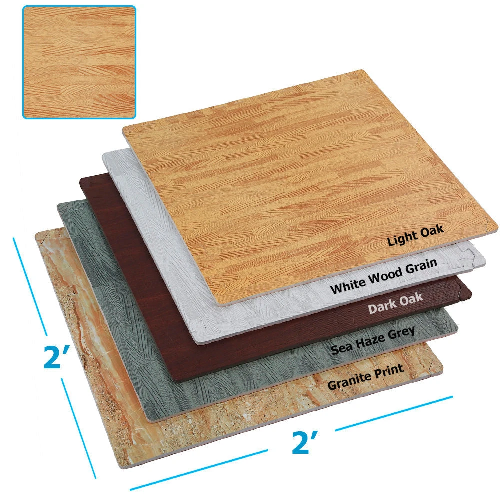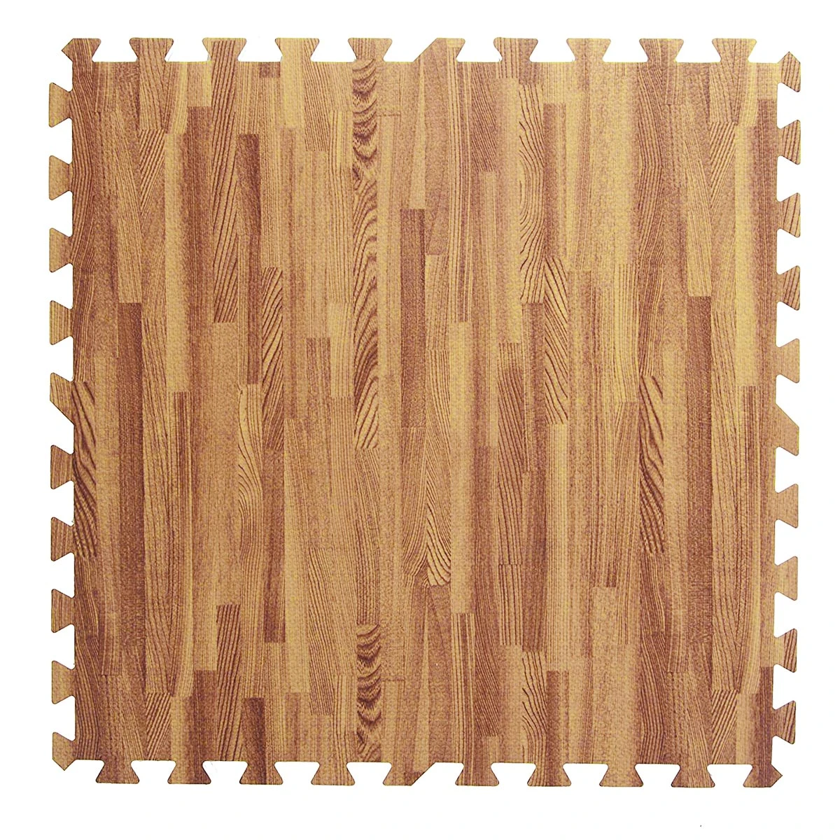 - VERSATILE ? The water-resistant and noise-resistant foam mat is easy-to-clean, with elegant Wood Grain print, Perfect for use in garages, gyms, home fitness rooms, children?s playrooms, Kitchens, Trade Shows.
