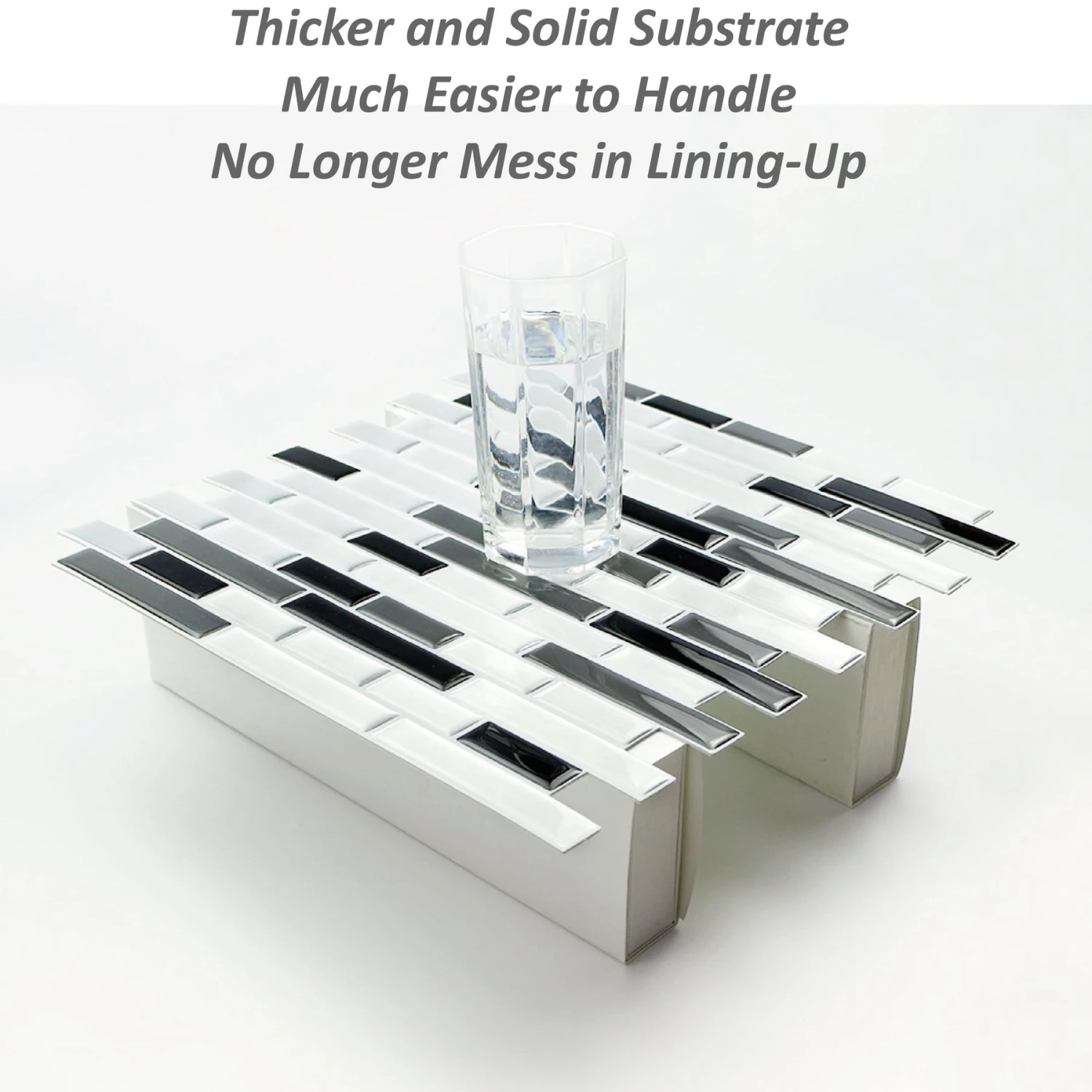 - Simply peel and stick, this stick-on tile backsplash can be quickly installed without grout, glue, or specialized tools. It is ideal for kitchen and bathroom DIY decor projects.