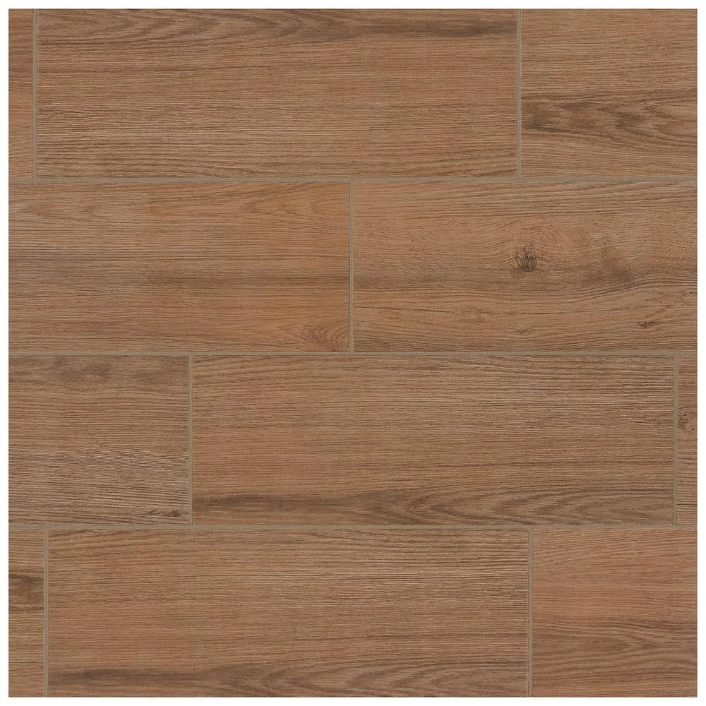 Enjoy the timeless charm of the TrafficMaster Glenwood Cherry 7 in. x 20 in. ceramic floor and wall tile. Use this cherry brown wood look ceramic tile to create a classic look in your living room or bathroom. This waterproof, scratch resistastant, stain proof tile gives you all the beauty of authentic wood with the versatility and easy maintenance of ceramic tile.