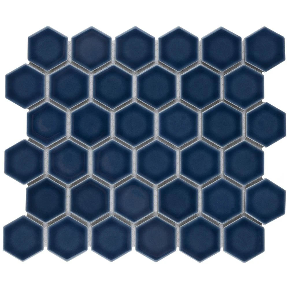 As a modern, enlarged deviation from the classic hexagon mosaic, our Hudson 2 in. Due Hex Denim Blue 11 in. x 12 in. Porcelain Floor and Wall Mosaic Tile instantly elevates spaces through a refreshing dose of geometric design. Featuring a reactive glaze with an eye-drop effect, these tiles have hues of faded denim blues that blend to white around the edges. This porcelain mosaic floor and wall tile creates a uniquely sporadic design through a pleasing mixture of cool-toned tints with additional dimension added by the smooth, high-gloss finish. Its impervious and frost-resistant features make this an ideal choice for indoor and outdoor floor and wall installations including, kitchen backsplashes, bathroom showers and accent walls. This hexagon mosaic can be used as a whole sheet or cut into smaller strips as an accent piece. It is a perfect choice on its own or coordinated with other colors in our Hudson 2 in. Due Hex series. Tile is the better choice for your space. This tile is made from natural ingredients, making it a healthy choice as it is free from allergens, VOCs, formaldehyde and PVC.