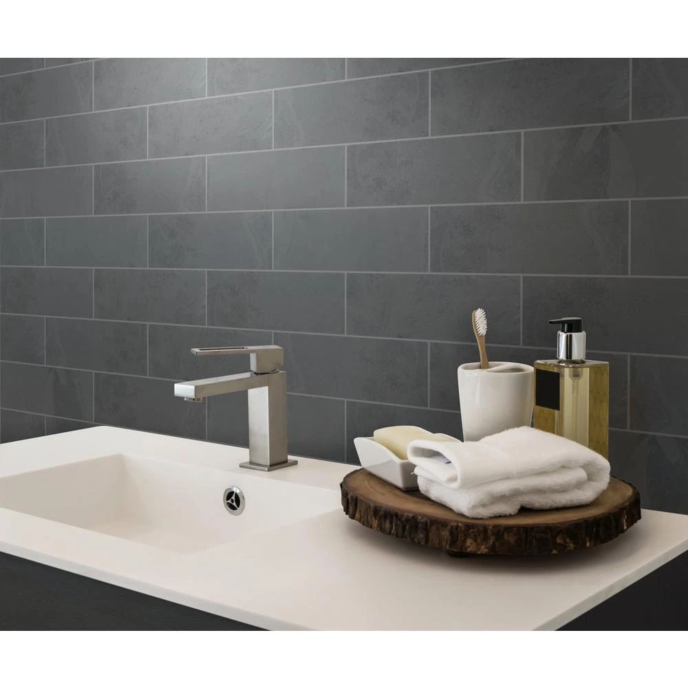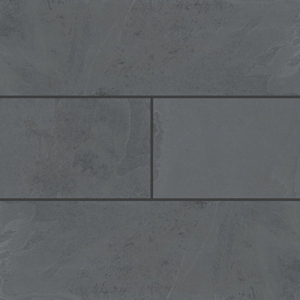 Hampshire Gauged Slate Tile has a natural finish that will add visual and textural allure to residential or commercial expanses. This 4 in. x 12 in. floor and wall tile from MS International has a modern black tone and a low sheen to create a fashionable statement in bathrooms or any space in need of a refresh. Highly skid-resistant, use it for shower walls, floors, countertops, backsplash, accent walls, foyers or fireplace facade to give your home or office a contemporary vibe. Exterior applications are suitable in locales that do not experience sub-freezing temperatures. Note: Inspect all tiles before installation. Natural stone products inherently lack uniformity and are subject to variation in color, shade, finish, etc. It is recommended to blend tiles from different boxes when installing. Natural stones may be characterized by dry seams and pit’s that are often filled. The filling can work its way out and it may be necessary to refill these voids as part of a normal maintenance procedure. All-natural stone products should be sealed with a penetrating sealer.