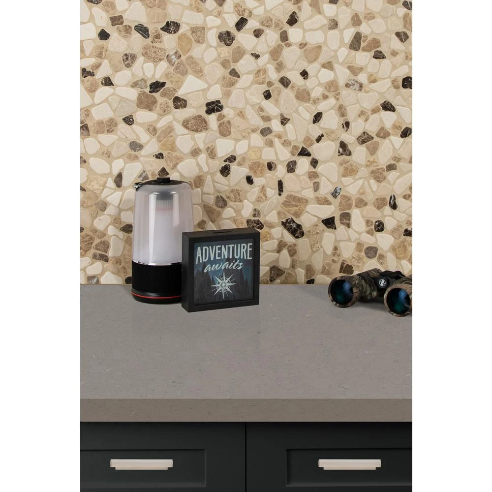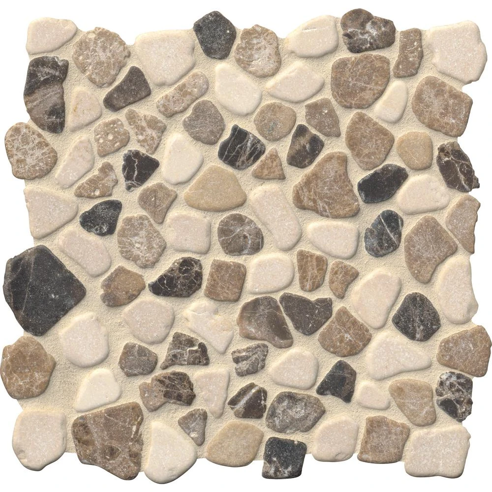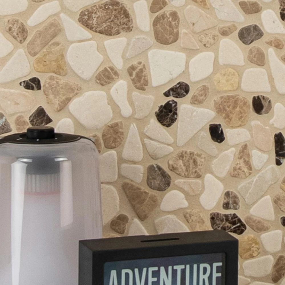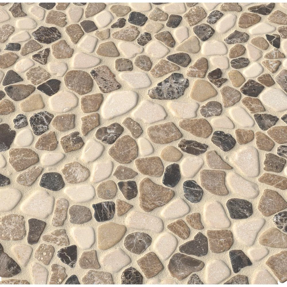 When you need to update your walls, floors or countertops, these MSI Mix Marble Pebbles Mosaic adds a spa-like appeal. These tiles are full of possibilities and offer warm neutrals with tumbled pebble. The cream, taupe, black and brown hues create an enchanting mix and they can be used in homes or commercial properties. These tiles are durable and water-resistant and suitable for high-traffic areas. Note: After installation, vendor disclaims any liabilities. It is recommended to blend tiles from different boxes as natural stone products can lack uniformity and are subject to variation in color, shade, finish, etc. Please inspect all tiles before installation; they may be characterized by dry seams and pits that are often filled. The filling can work its way out and it may be necessary to refill these voids as part of a normal maintenance procedure. All natural stone products should be sealed with a penetrating sealer.