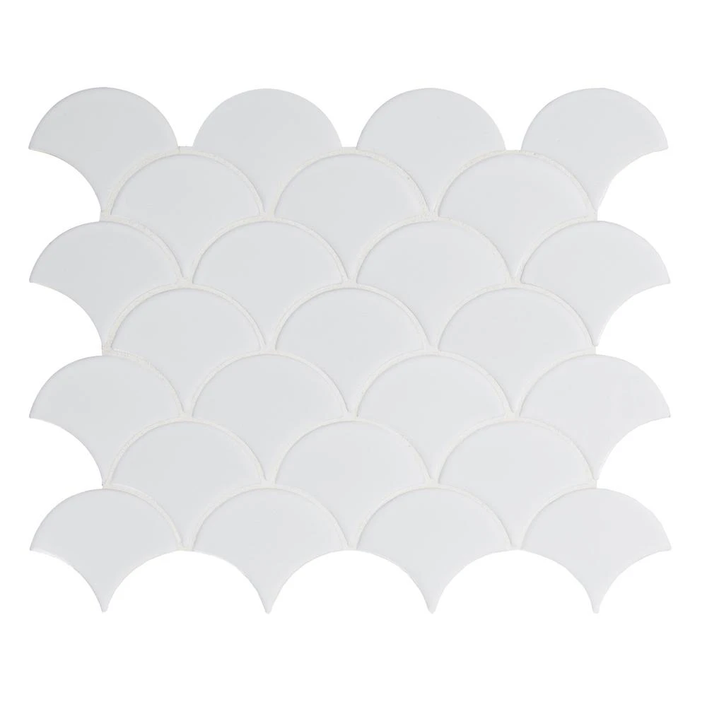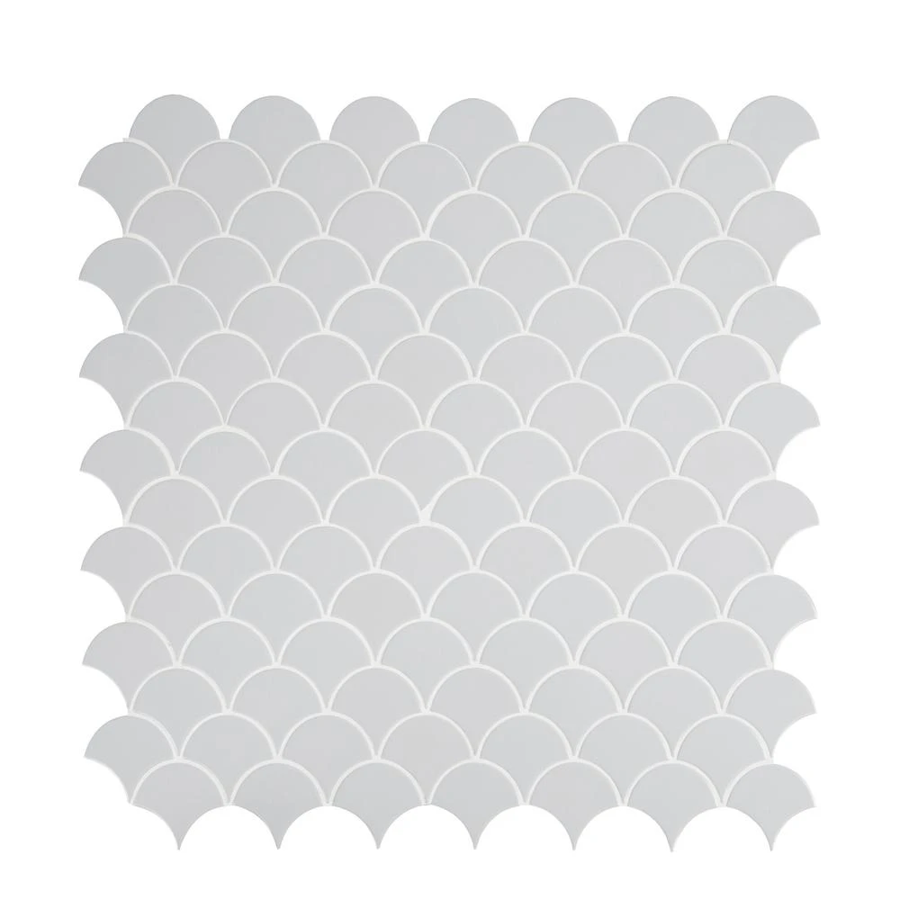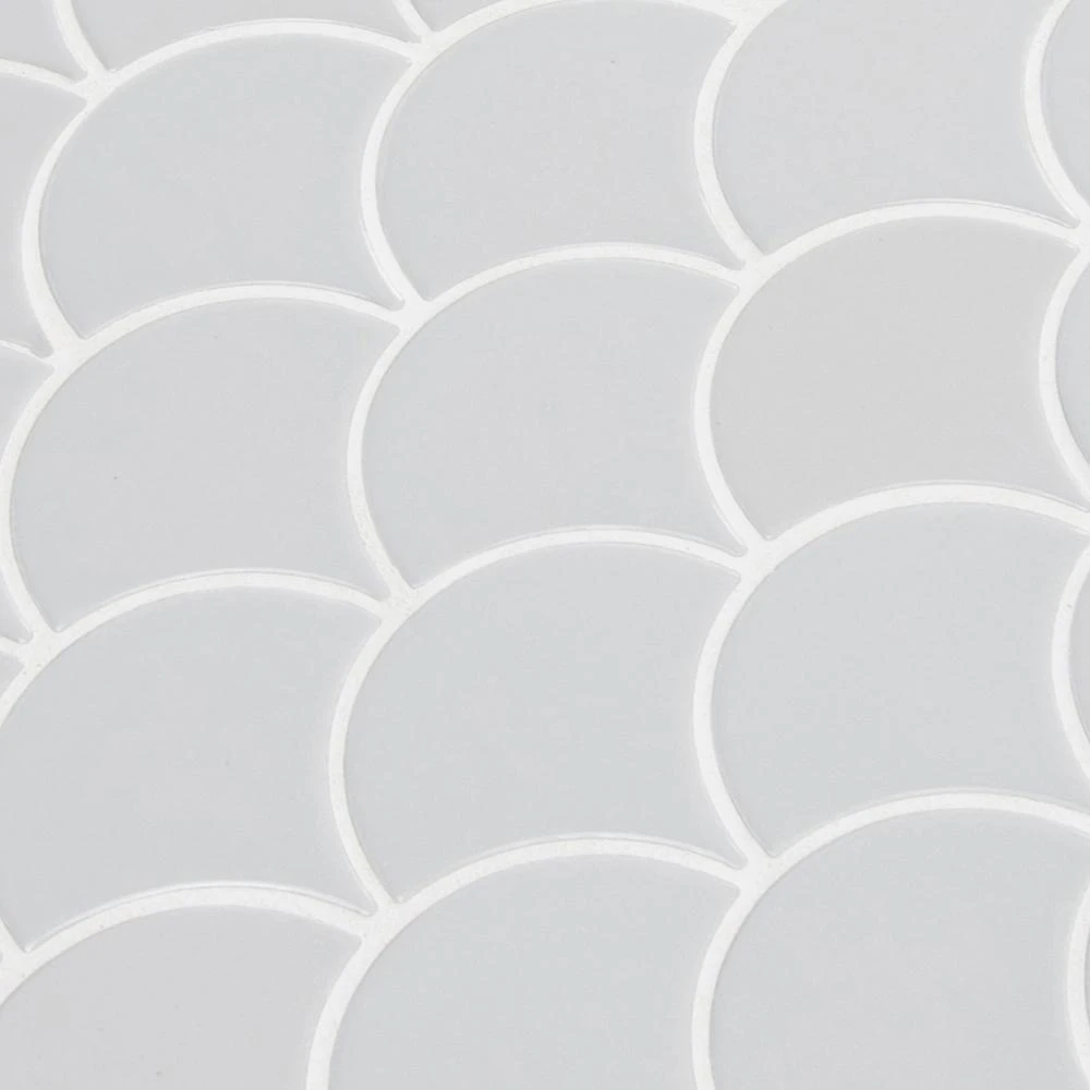 MSI’s Retro Scallop Gray porcelain tile features a soft-toned gray color that complements nearly every design scheme. Its charming trendy pattern and glossy finish create visual interest without overpowering its a perfect choice for updating kitchens and baths. A welcomed addition to both homes and light use commercial spaces, use it as wall tile, bathroom or kitchen backsplash tile, or on floors or countertops. Mix and match Gray Glossy Fish Scale tiles with other tiles from MSI’s Domino Collection for easy to achieve designer looks. These tiles are mounted on mesh-backed sheets for simplified installation and a professional finish.