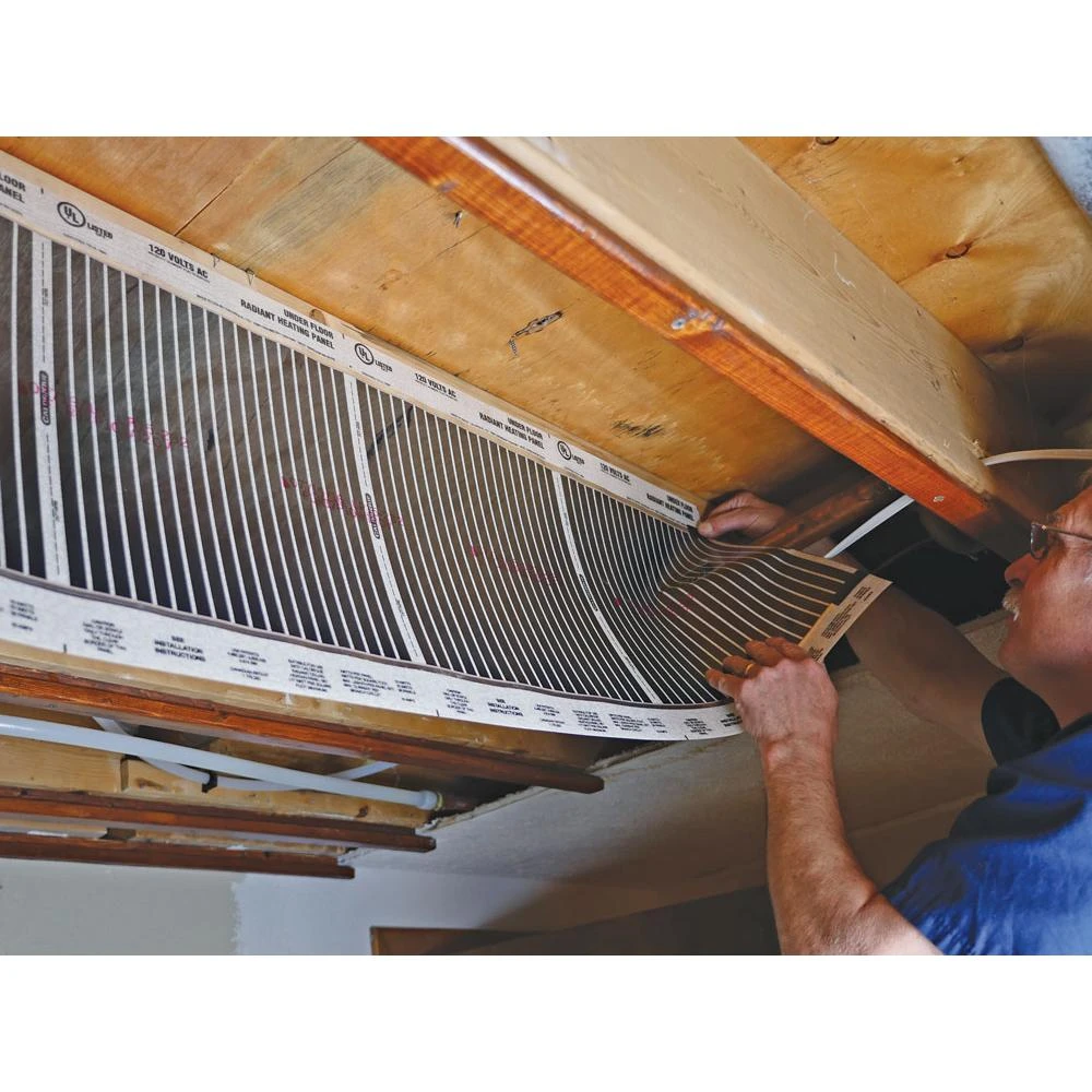 - UnderFloor Warming Mat System installs between existing floor joists; from available crawl space or basement beneath